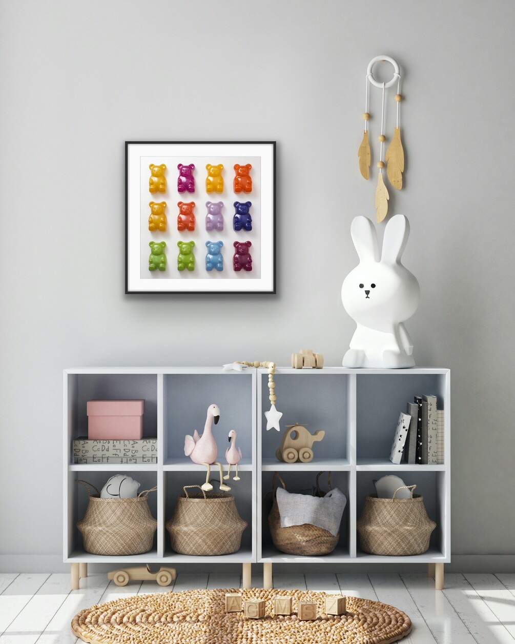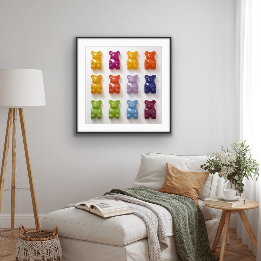 Add a pop of playful color to your space with this vibrant gummy bear digital download! Perfect for kitchens, kids' rooms, or any area needing a fun, cheerful touch. This high-quality JPEG file offers versatility, allowing you to print it in multiple standard sizes to fit your favorite frames.